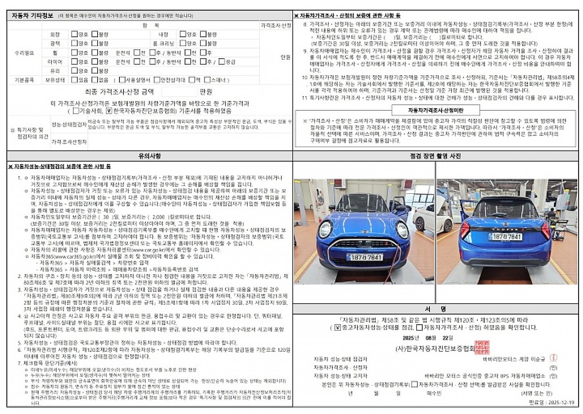 해당차량은 바바리안 모터스에서 운영하는 보증/케어 프로그램을 적용 받으실 수 있는 차량입니다. (유상 추가 구매)