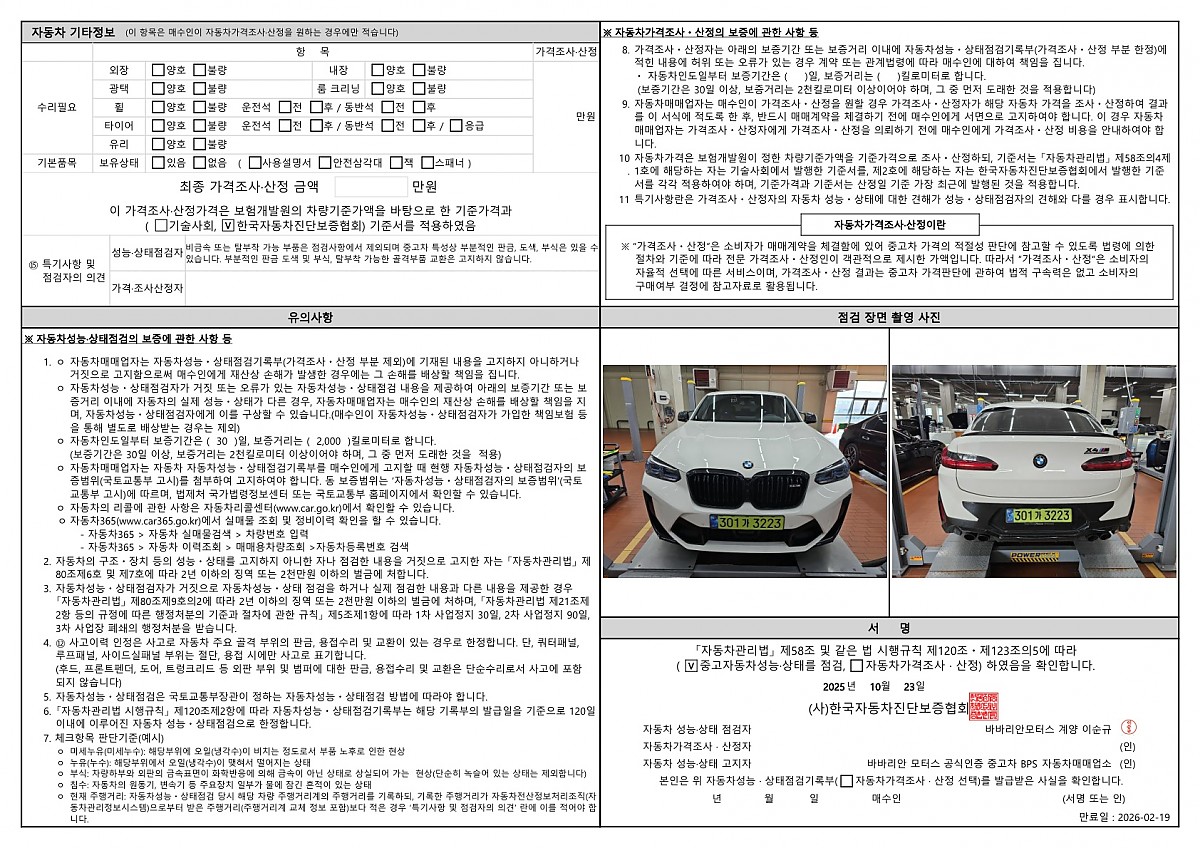연식 부터 주행거리에 이르기까지 중요한 차량 정보를 모두 기록하여 고객께 전해 드리며
