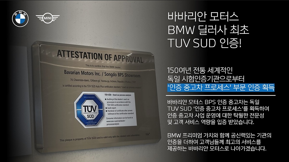 안녕하십니까. BMW MINI공식 인증 중고 사업부 인천전시장 " 서준형 과장 " 입니다.