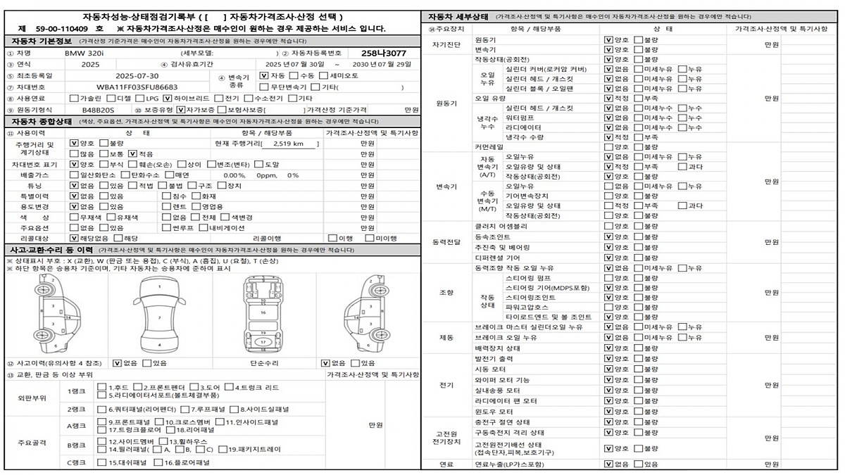 - 사고이력 : 사고이력 X / 단순수리 X