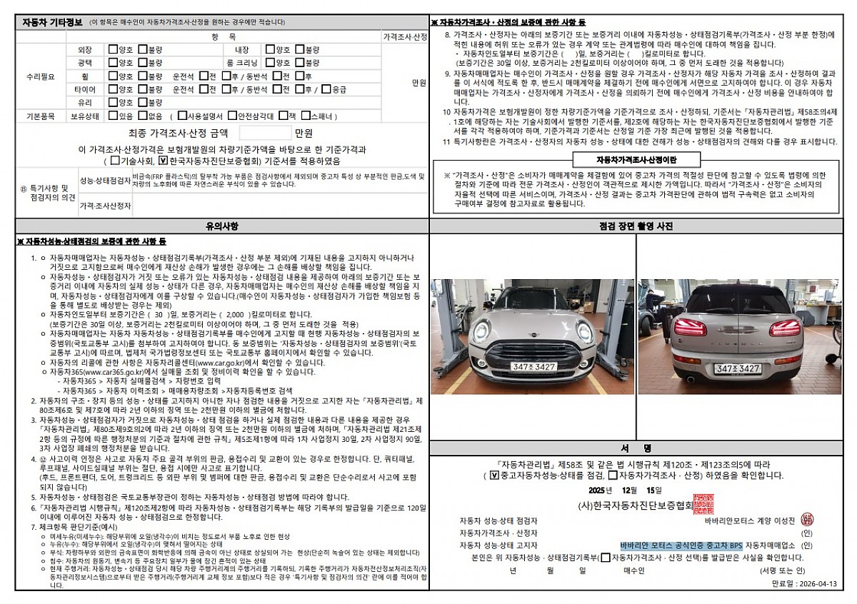 -차량 설명 MINI Cooper Clubman Classic시리즈 입니다.
