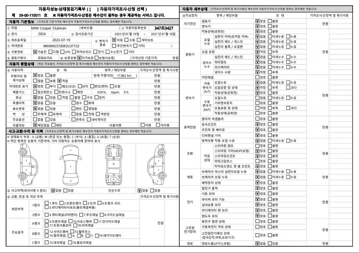 ▶ 차량키로수: 17,862KM