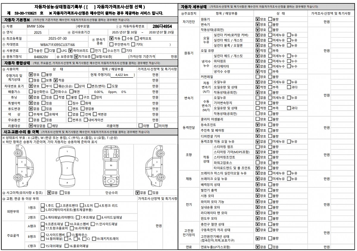 * 2025년식 ( 2025년 7월 30일등록 ) BMW 530e 케이프요크 그린 색상 차량을 판매합니다.