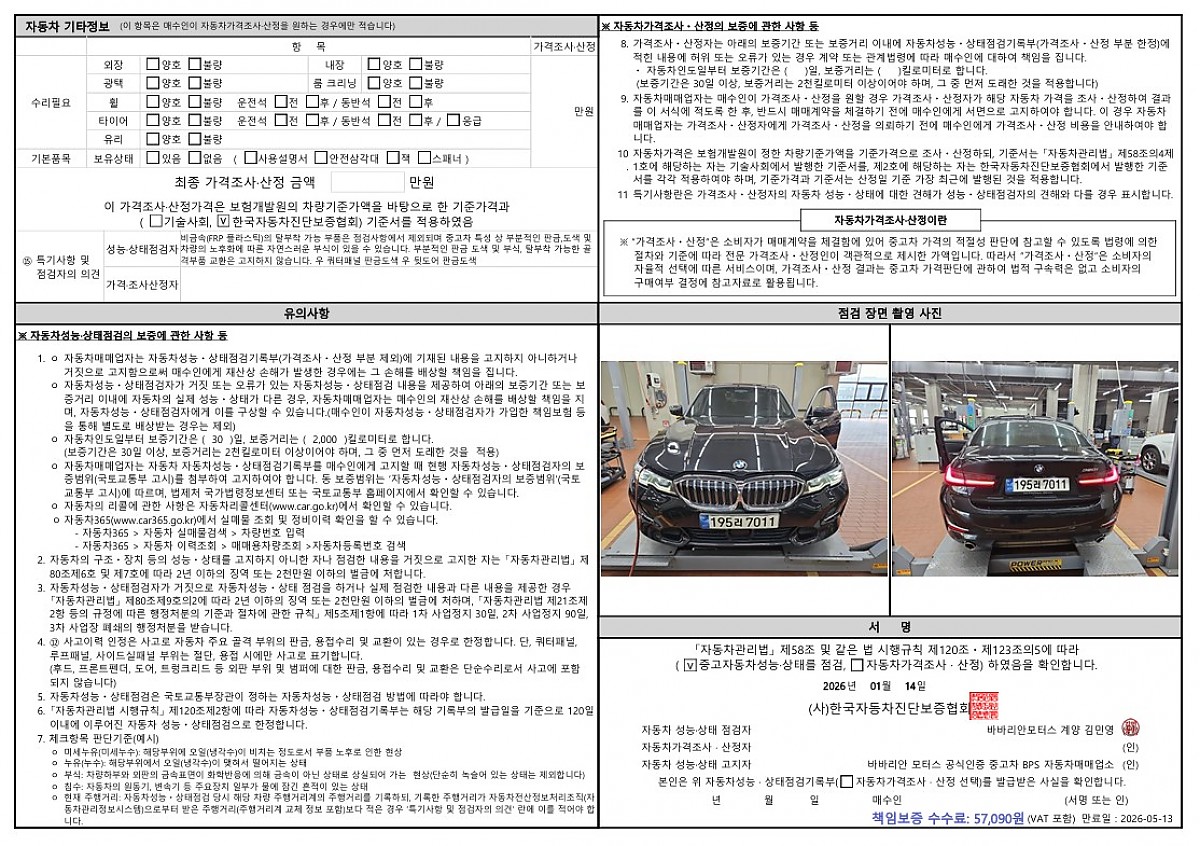 - 특이사항 : 우후휀 ,우후 도어 단순도색, 전범퍼 단순도색