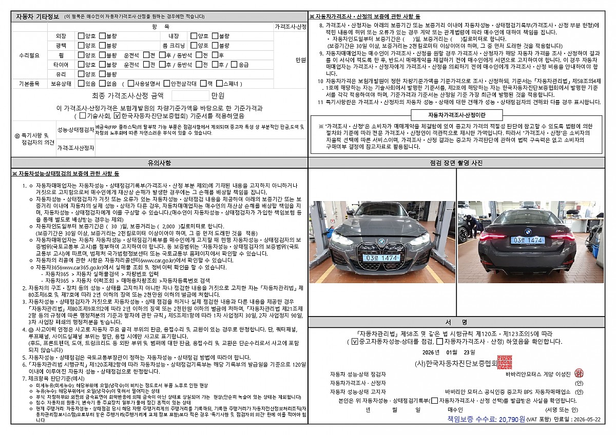 ▷ 바바리안모터스 인증중고사업부에서 판매되는 모든 차량들은 공식서비스센터에서