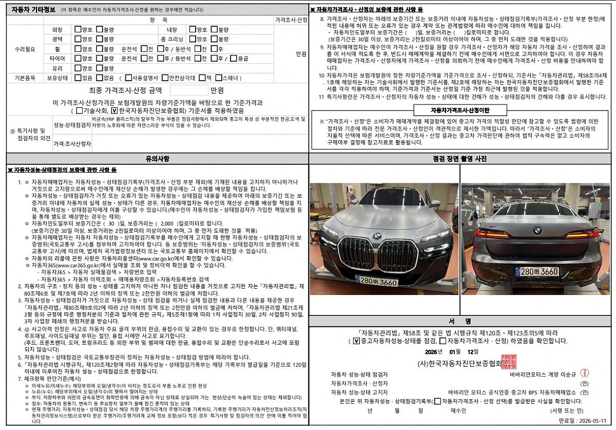 저희 바바리안인증중고사업부에서 판매되는 모든 차량들은 공식서비스센터에서