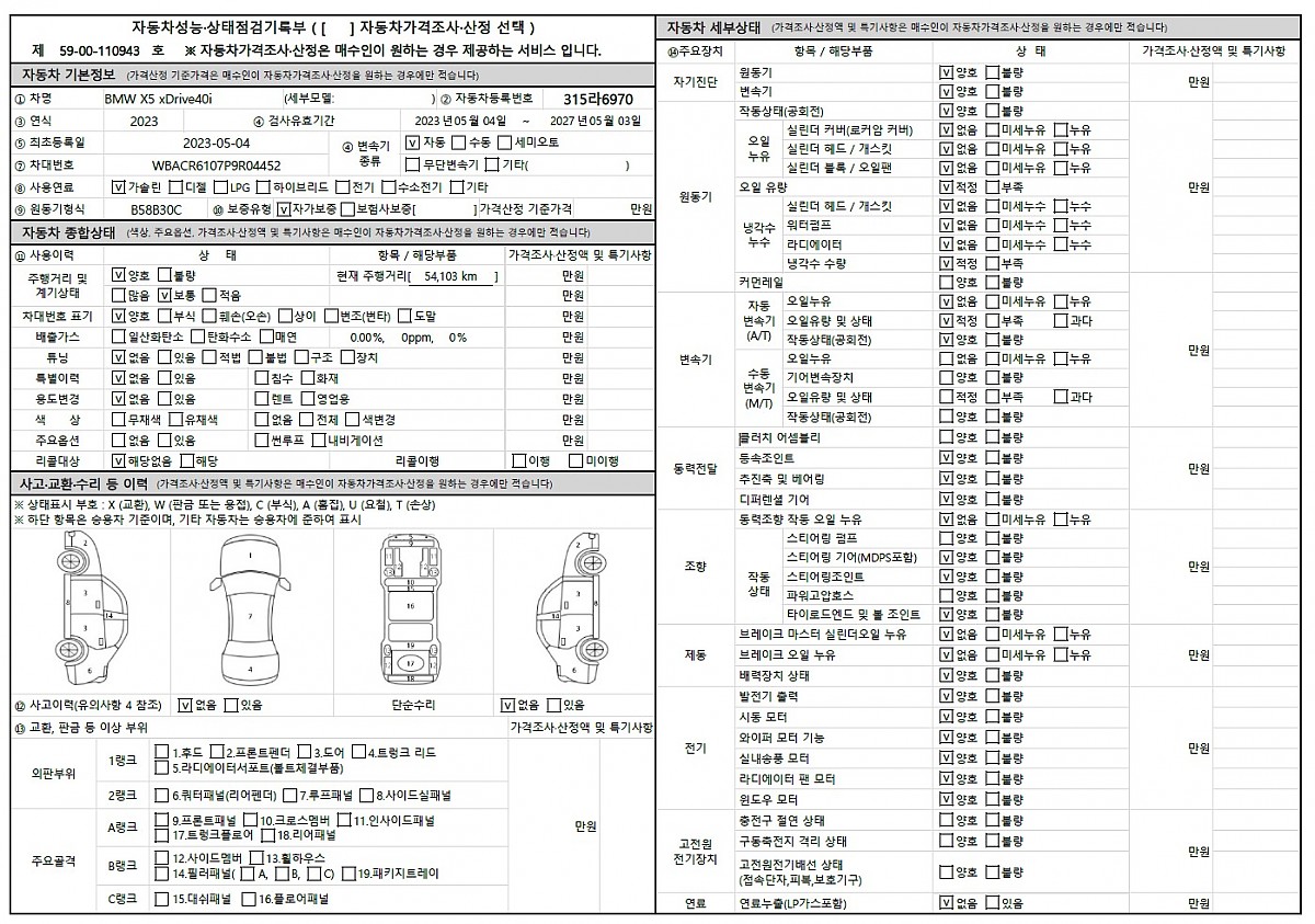 사고유무 : 무사고 ( 운전석도어 판금도장 ) 정식BMW센터 수리