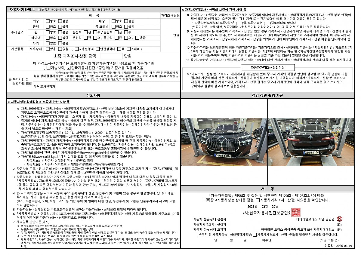 연식 부터 주행거리에 이르기까지 중요한 차량 정보를 모두 기록하여 고객께 안내