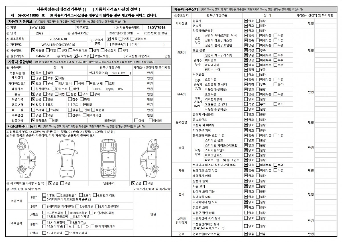 차량상태: 무사고