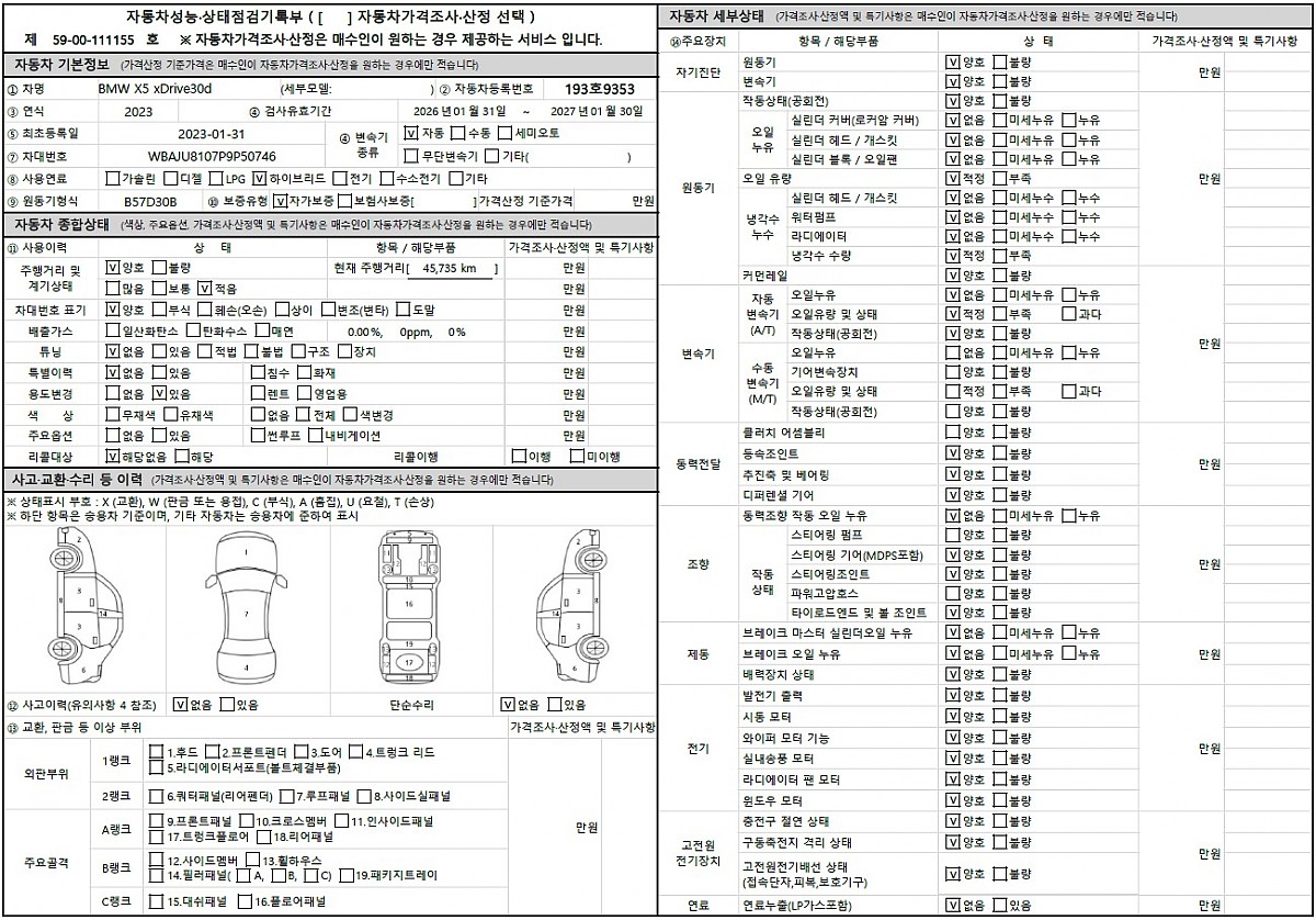 무사고: 단순수리 X 보험이력 X