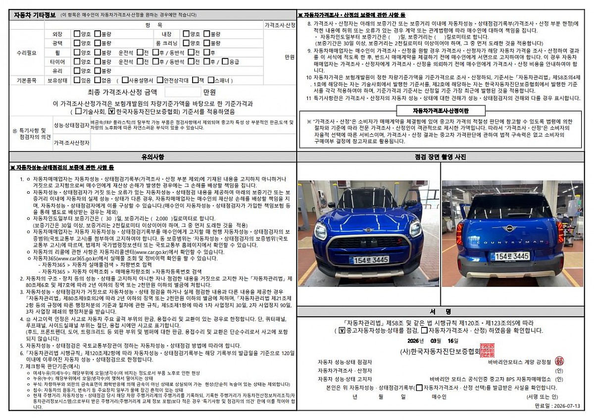 차량번호: 154로3445
