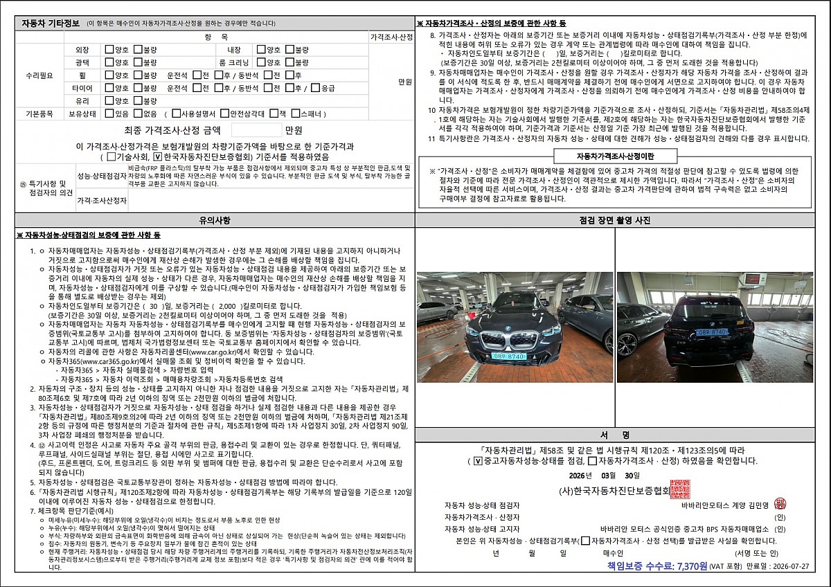 연식 부터 주행거리에 이르기까지 중요한 차량 정보를 모두 기록하여 고객께 전해 드리며
