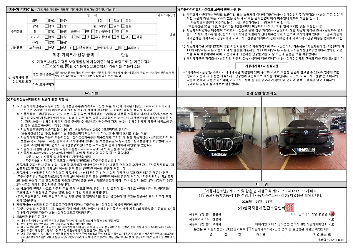 ▶신차 무상보증이 1년 미만 남았을 시 인증중고 출고일 기준 1년(2만키로) 엔진미션 및 차량 BPS 무상보증 가능