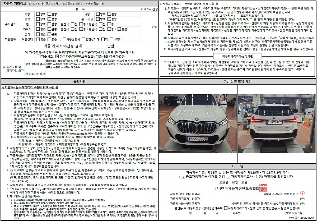 중고차보증(1년 또는 2만km)